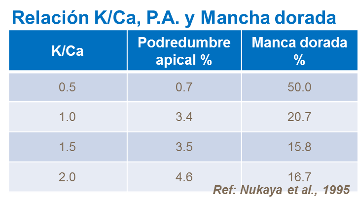 Con un programa de nutrición equilibrado, sobre todo entre potasio y calcio, se reducirá este problema. Mediante la aplicación de nitratos en lugar de fertilizantes con cloruro, se reducirá el riesgo de manchas doradas en los tomates.